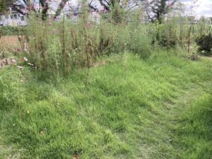 芝刈りとコスモスを刈り取って