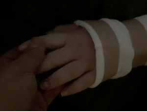 「点滴漏れがあり、むくみと水脹れがあり