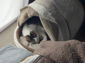 チュールをあげて寝てもらいました。