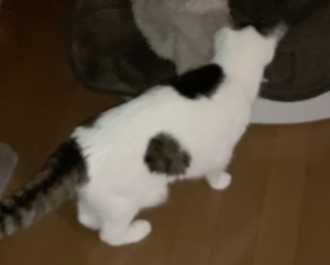 トイレを済ませて、カリカリを食べていました。